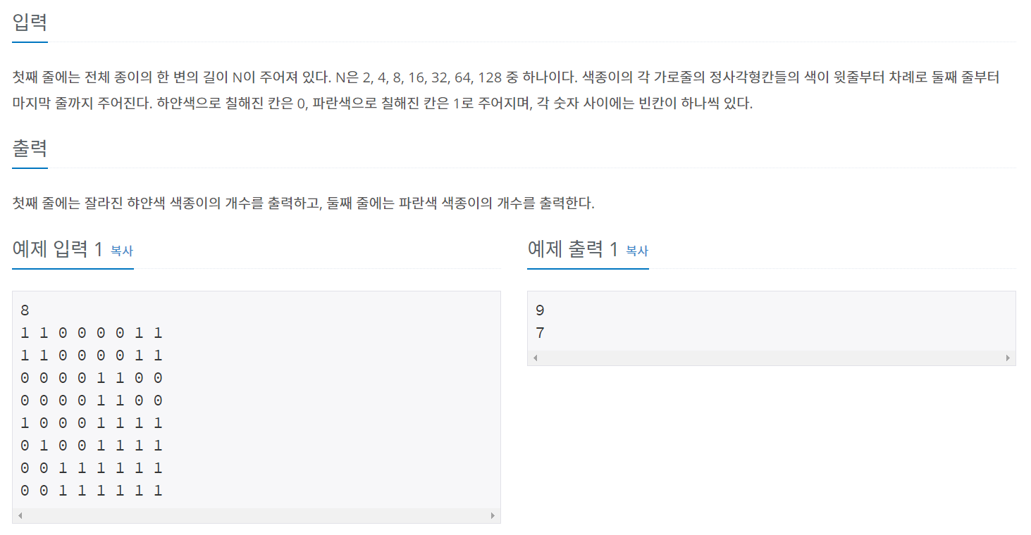 2630 색종이 만들기 www.acmicpc.net/problem/2630