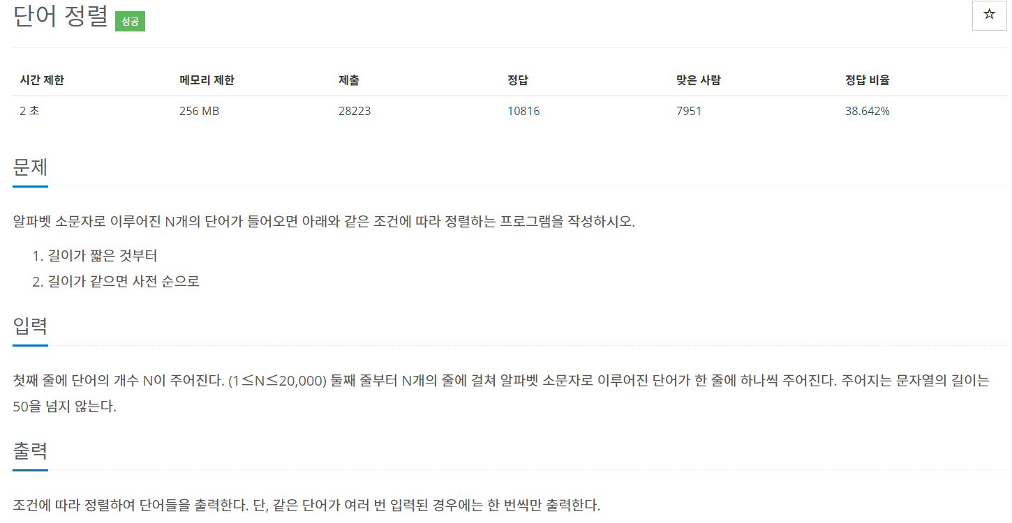 1181번: 단어 정렬